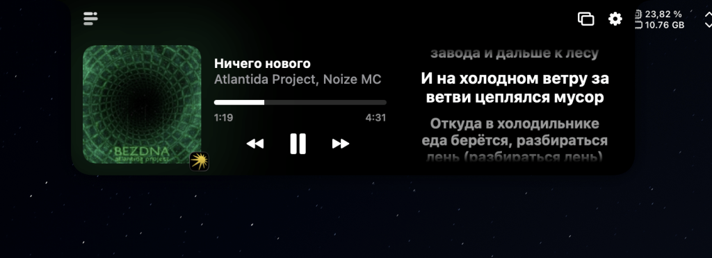 у программы также есть собственный виджет разных размеров с текстами песен.